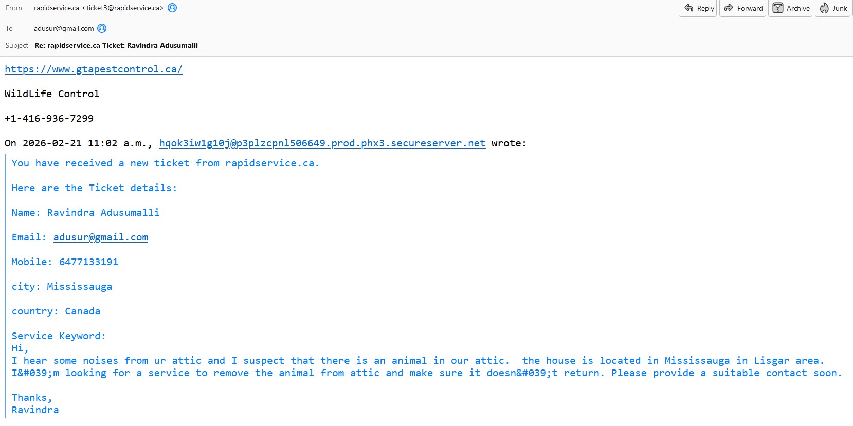 Project 1627, year 2026, wildlife control